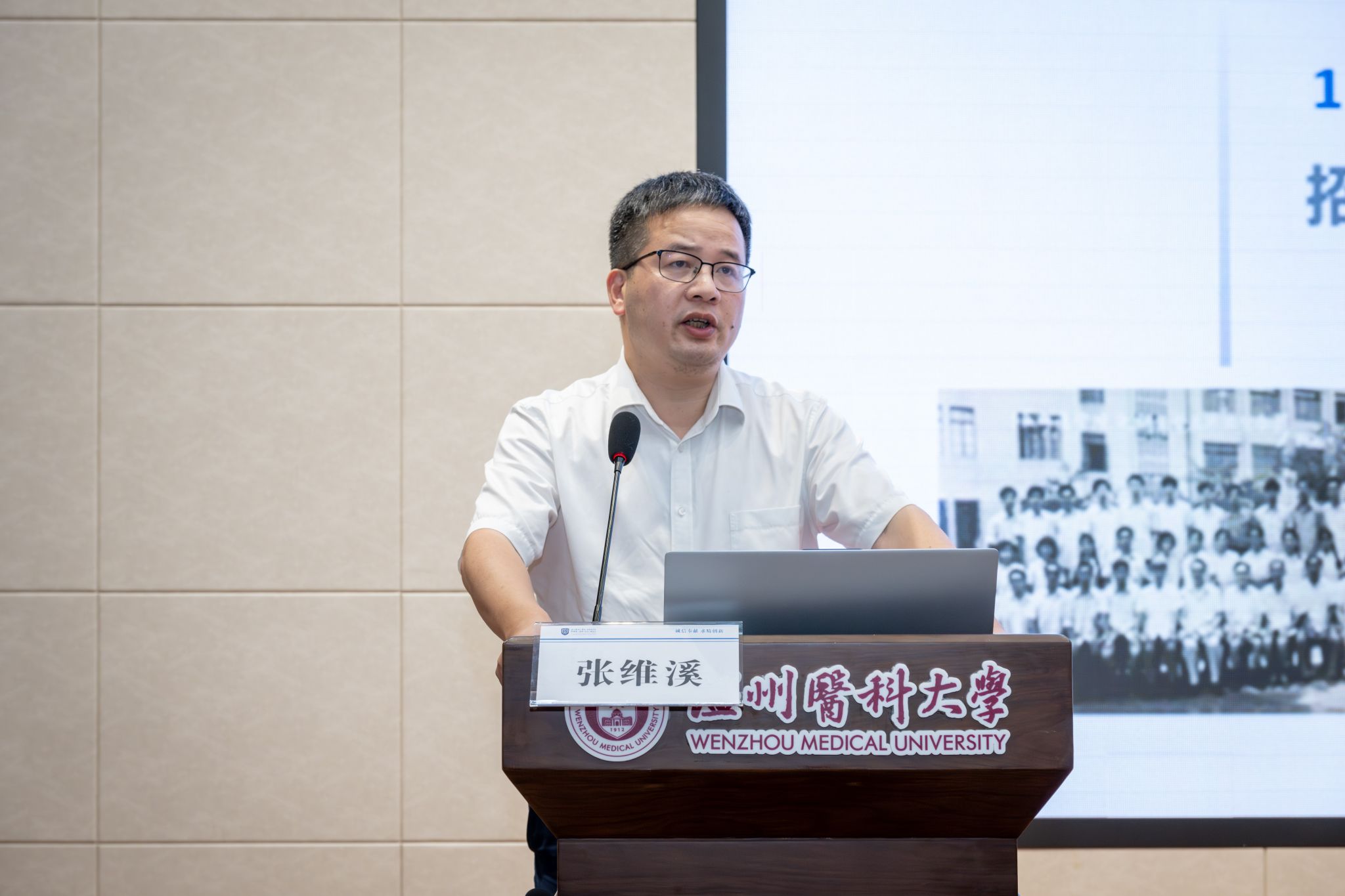 随后,张维溪院长从历史传承、师资队伍、生源质量、科研建设等多个方面向同学们介绍了学校概况,并针对儿科学专业课程建设、数字资源、教材建设及创新创业等进行深入讲解。张维溪院长用四个感人的真实故事,生动诠释了“敬畏、慈爱、严谨、坚守”的温医精神。他指出,温医精神是“一个人的选择,一群人的坚守”,发扬和传承温医精神,是温医儿科人的使命与光荣。